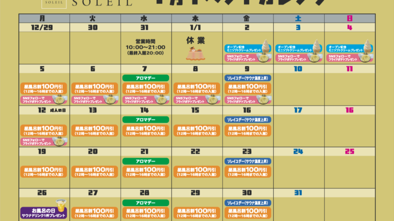 1月のイベントカレンダー